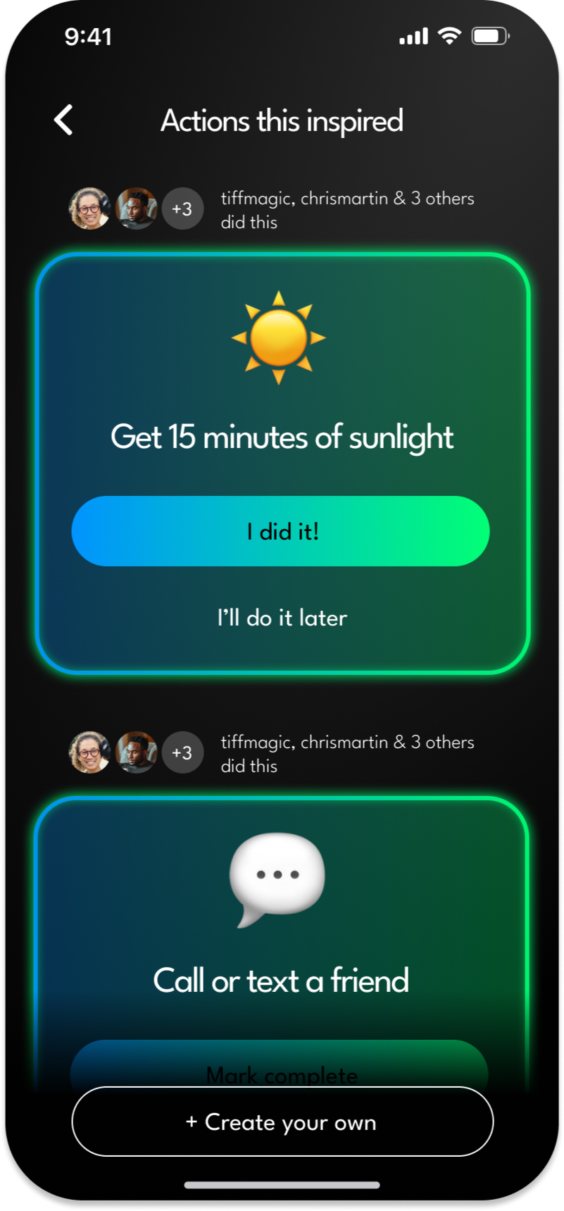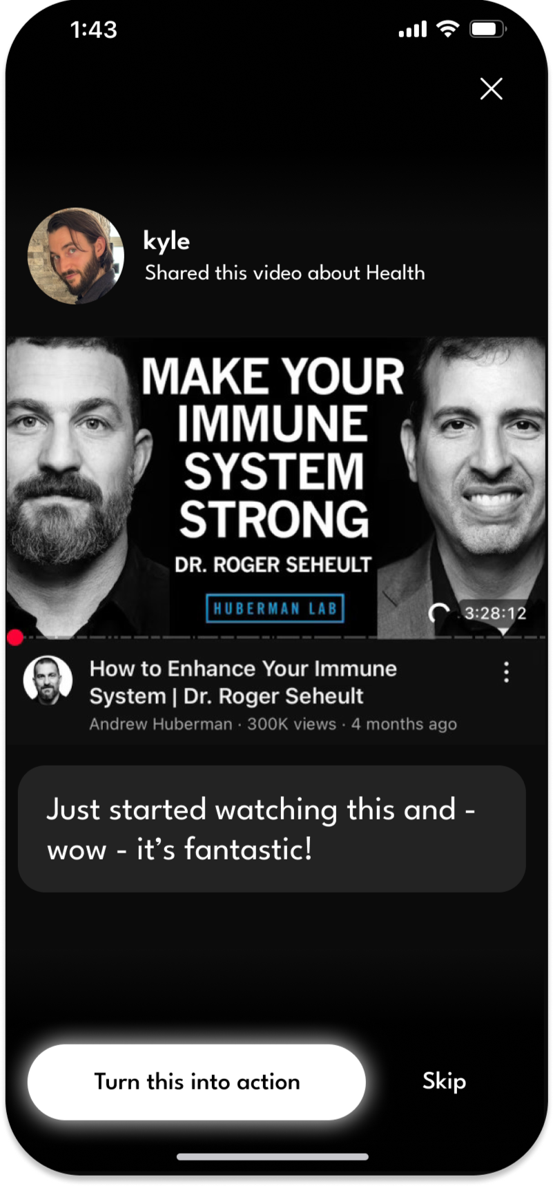 Living your best life doesn’t happen by binge-watching YouTube in your underwear for three hours.It happens when you rise. When you act. When you stop scrolling and start living.After watching a video or reading a post, people share the actions it inspired them to take. You can follow their lead or blaze your own trail.Every action moves you closer to who you want to become, and every share helps someone else take their next step too.